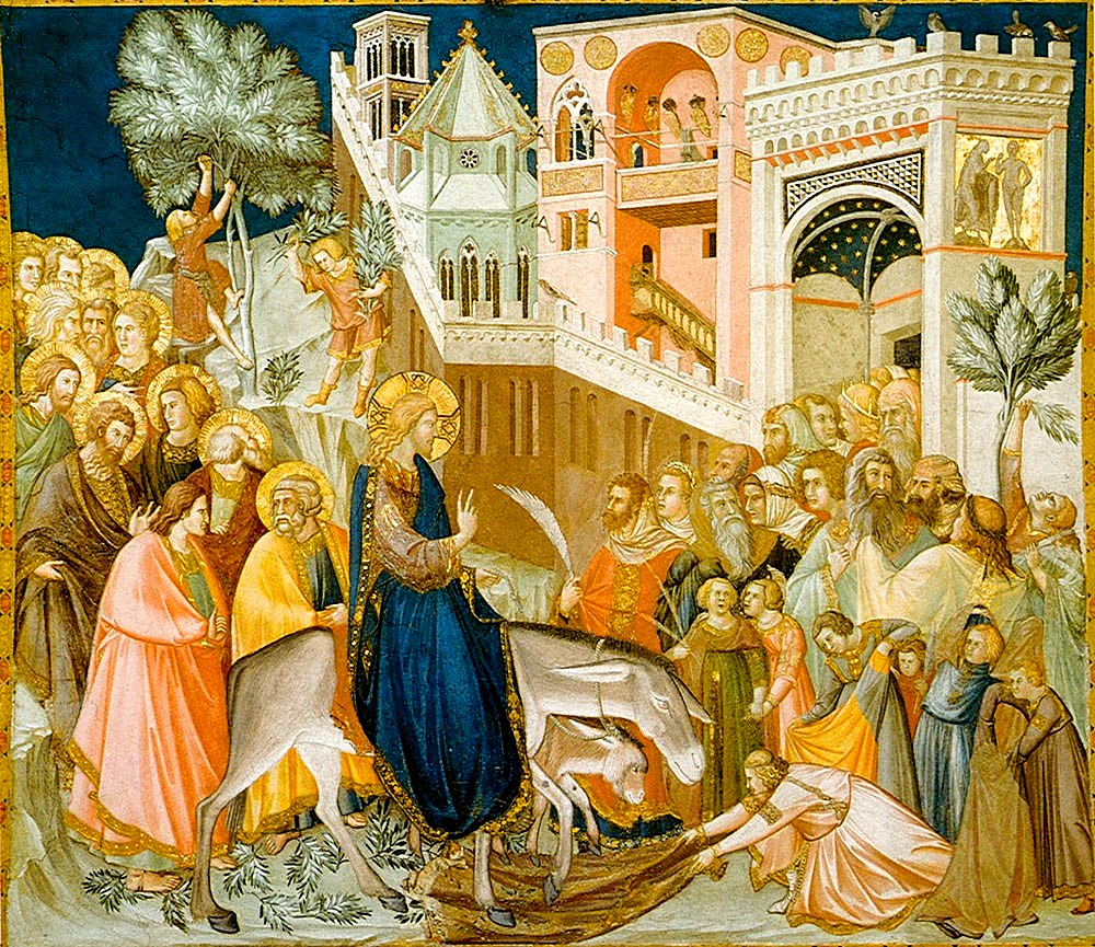 Christ’s entry into Jerusalem (1320), fresco by Pietro Lorenzetti (1280-1348). Basilica of San Francesco d’Assisi, Assisi, Italy. (Click image to enlarge)